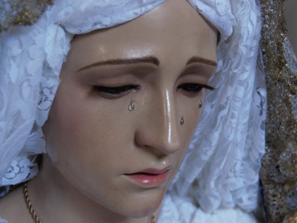 En el misterio de la Pasión, María es la Madre fiel que se mantuvo intrépida, en pie, junto a la cruz donde el Hijo, para salvarnos, pacificó con su sangre el universo.