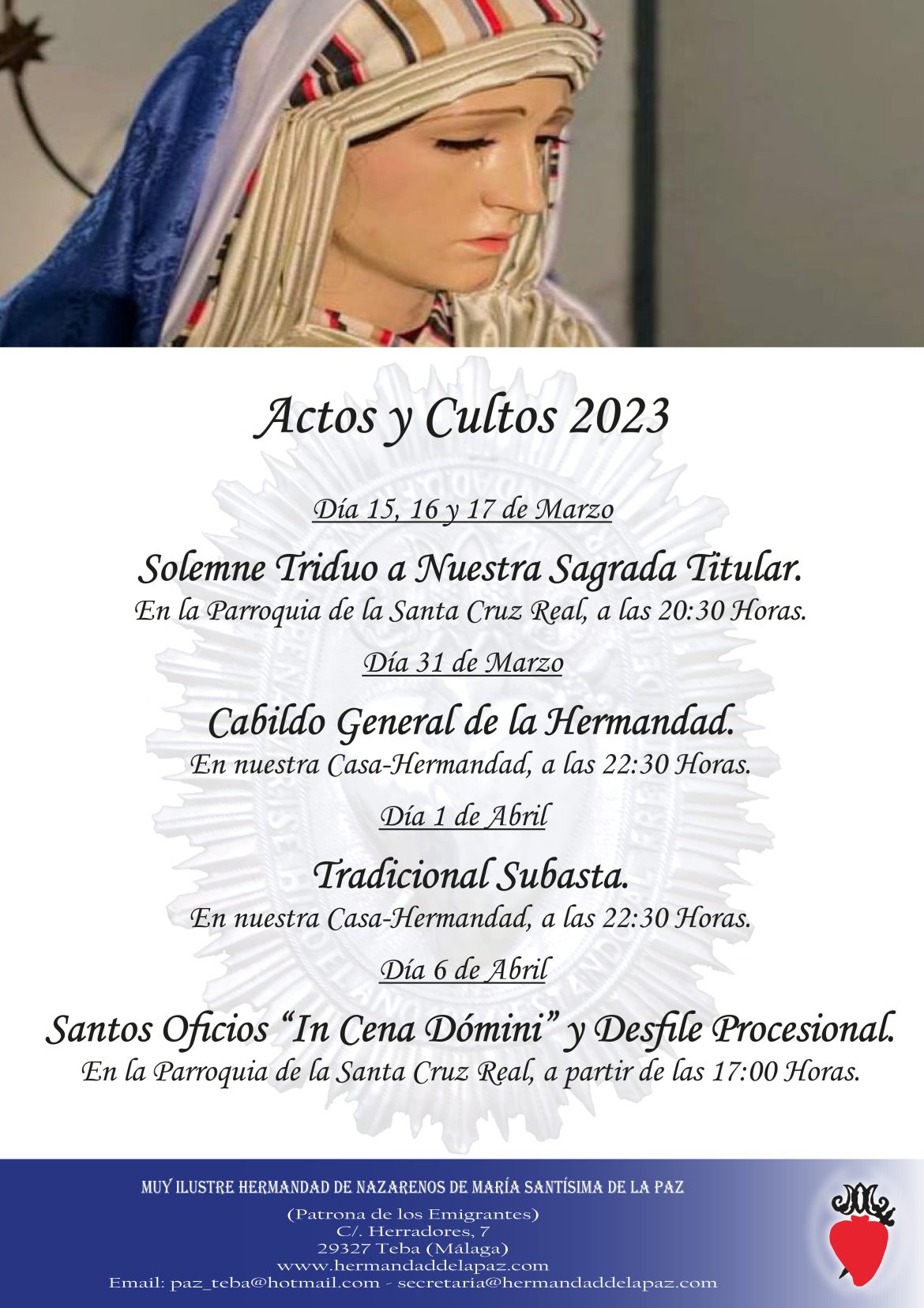 Actos y Cultos en honor a Nuestra Sagrada Titular