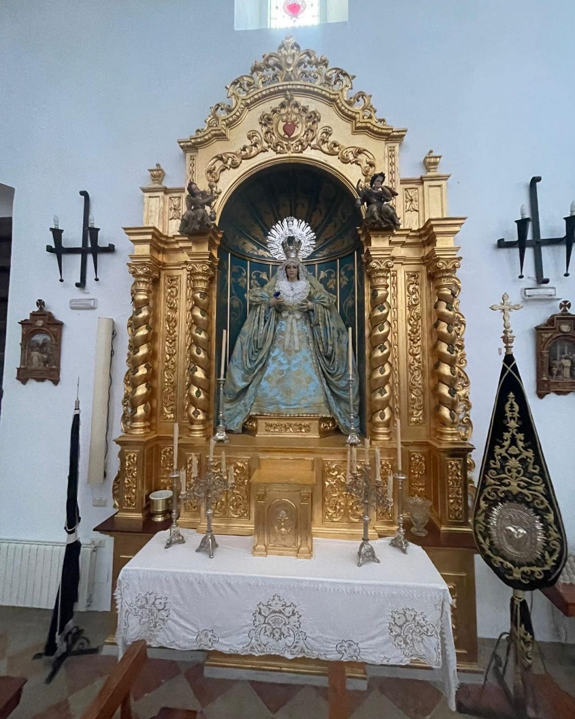 María Stma de la Paz se encuentra ataviada para el tiempo de Adviento y para el día de la Inmaculada Concepción.