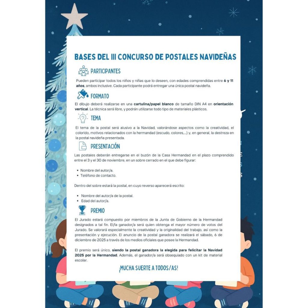 La postal ganadora será la elegida por la Hermandad para felicitar la Navidad 2025, y su autor/a recibirá un bonito detalle. ![]()