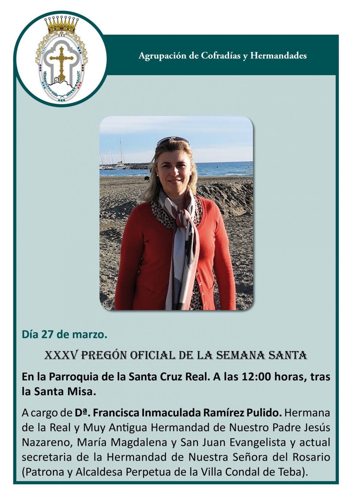 Propuesta en el año 2020, no fue posible dado el momento álgido de la pandemia que estábamos viviendo, este año nuevamente ha sido propuesta. Aprovechamos el artículo que publicamos en esa fecha, para dar a conocer a Francisca Ramírez, Pregonera 2022