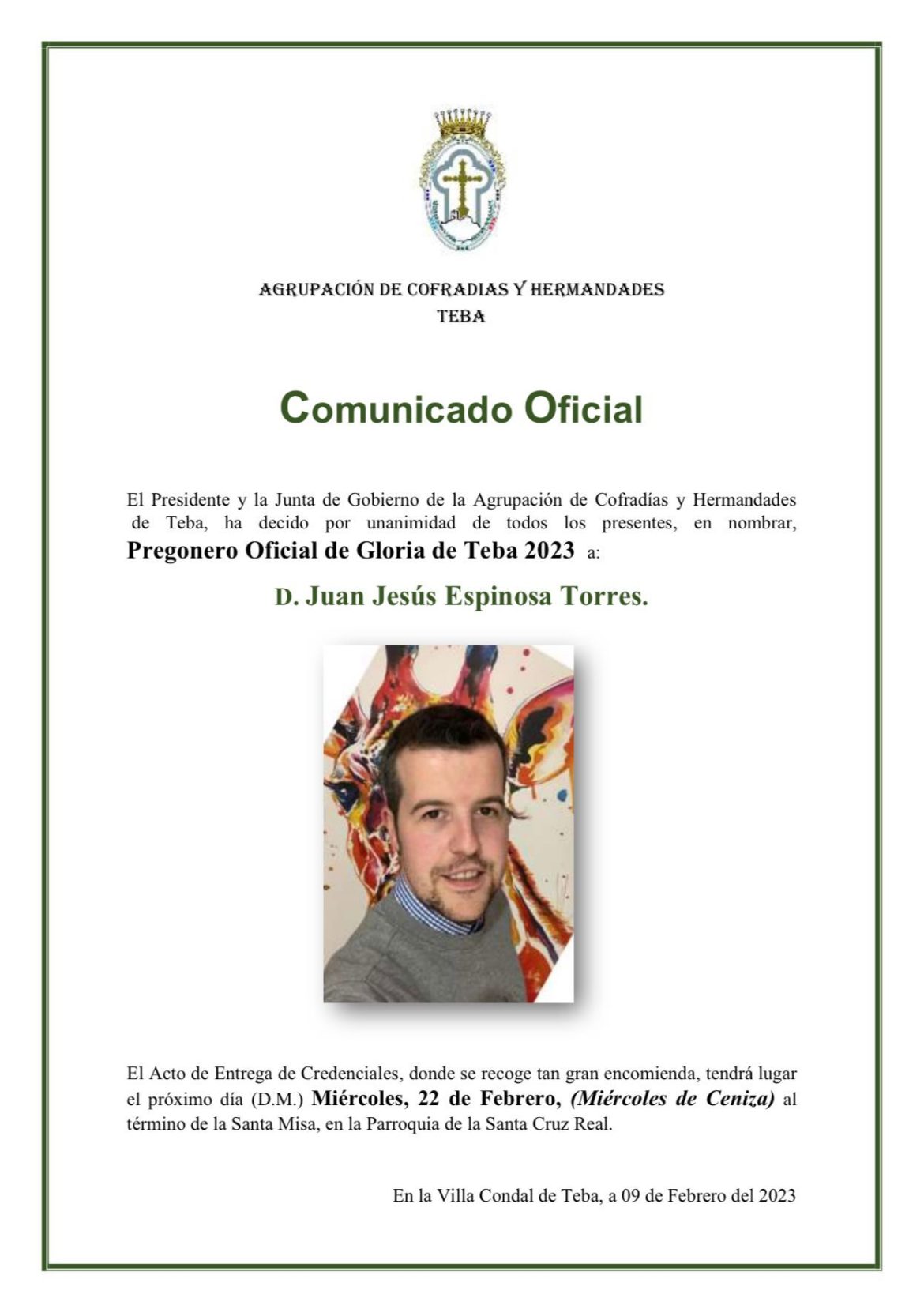Noticias Pregonero de Gloria 2023 por admin febrero 11, 2023 febrero 11, 2023 216 0 comentario Publicación anterior Pregonero 2023 Siguente publicación Presentación Cartel Semana Santa 2023 También te puede interesar III CONCURSO DE POSTALES NAVIDEÑAS noviembre 3, 2025 Sorteo de la Feria del Queso 2025 octubre 24, 2025 Curso de Iniciación al Corte del Jamón octubre 16, 2025 Fiestas en Honor a Nuestra Señora del Rosario.... septiembre 23, 2025 Día de la Hermandad 2025 agosto 26, 2025 PREGON FERIA 2025 julio 31, 2025 YA HUELE A FERIA julio 30, 2025 Lotería de Navidad julio 30, 2025 Presentación Cartel Romería 2025 mayo 12, 2025 Semana Santa 2025 abril 27, 2025 Deja un comentario Cancelar respuestaLo siento, debes estar conectado para publicar un comentario.
